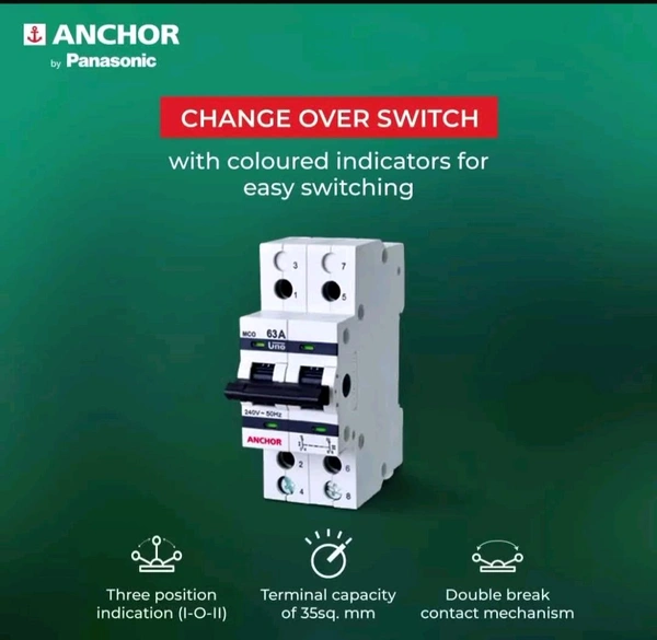 (XRYRF) Anchor by Panasonic 98084 UNO Series 63 Ampere Dual Pole Change Over Switch Circuit Breaker Safe Reliable Protection,