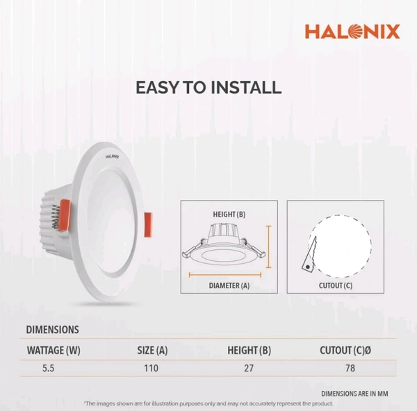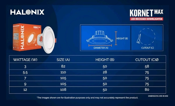 (UY) Halonix Kornet 5.5-Watt Concealed downlighter | Junction Box Downlighter | Cut Out- 3 inch | Surge Protection - Upto 4 KV (Pack of 1) Polycarbonate